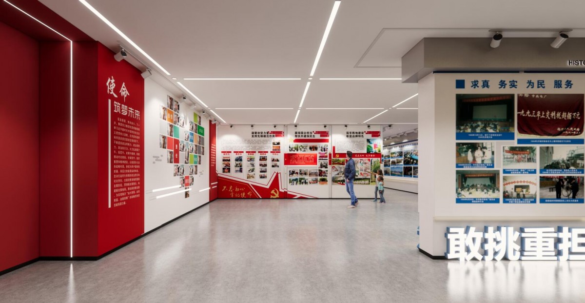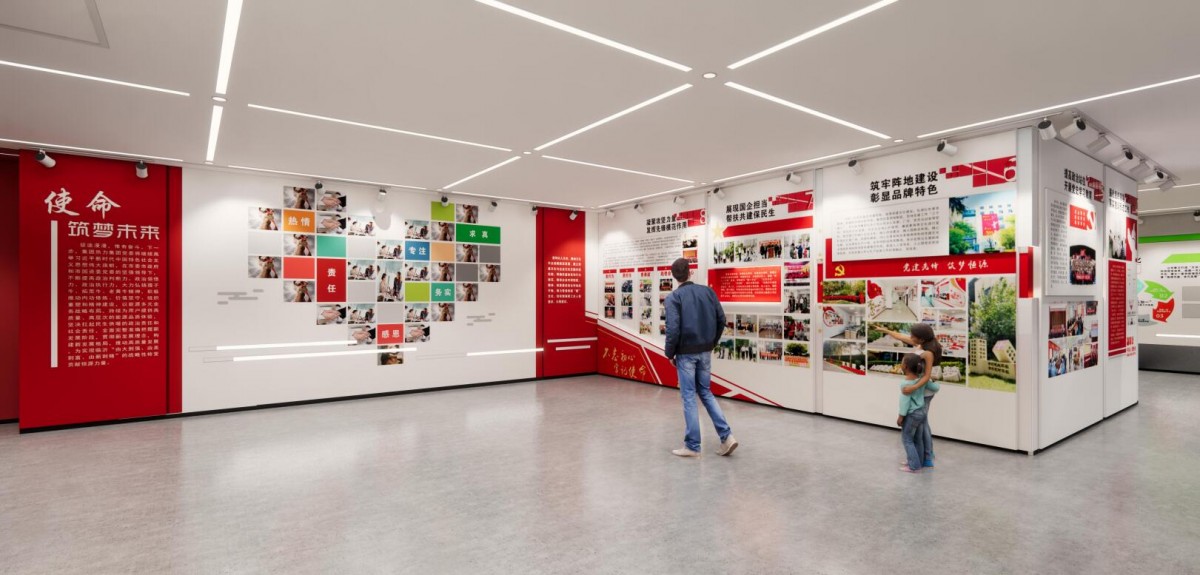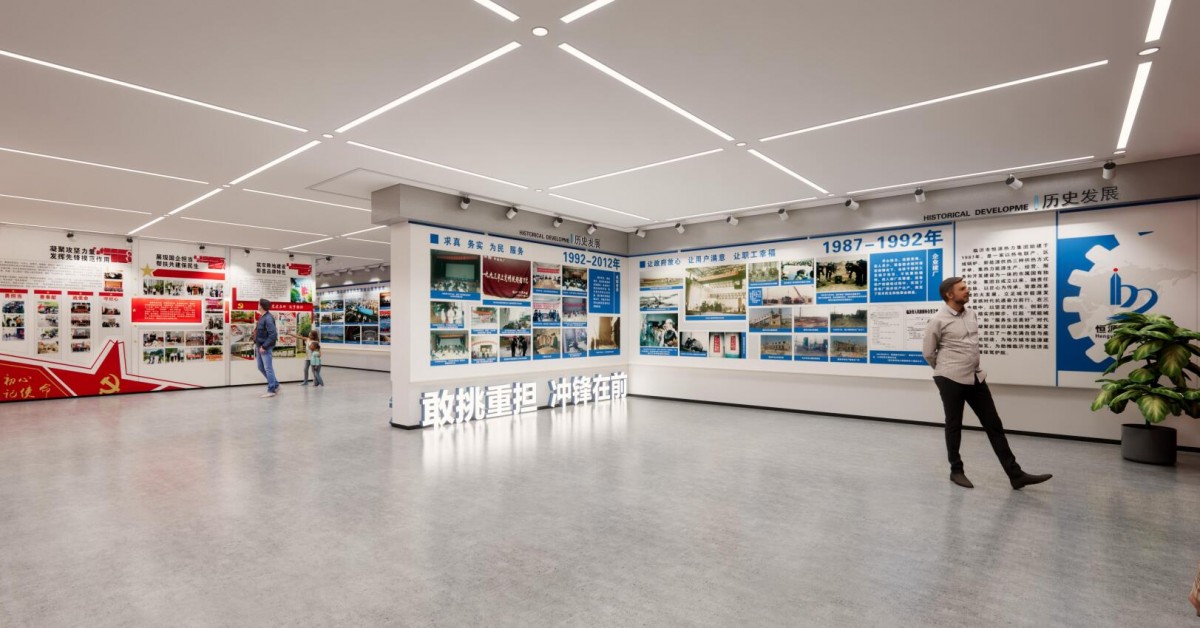 恒源熱電黨建展廳的設(shè)計(jì)具有多重意義,既服務(wù)于企業(yè)內(nèi)部黨建工作的深化,也體現(xiàn)了國有企業(yè)在新時代背景下的社會責(zé)任與文化傳承。黨建展廳作為紅色教育陣地,通過系統(tǒng)展示黨的光輝歷程、理論創(chuàng)新和實(shí)踐成果,能夠強(qiáng)化黨員干部的政治意識和責(zé)任擔(dān)當(dāng)。?作為國有企業(yè),恒源熱電將黨建展廳與企業(yè)文化相結(jié)合,展現(xiàn)了黨建成果與企業(yè)發(fā)展同頻共振的實(shí)踐。?黨建展廳作為展示企業(yè)形象的窗口,通過呈現(xiàn)恒源熱電在能源保供、節(jié)能減排、社區(qū)服務(wù)等方面的貢獻(xiàn),體現(xiàn)了國有企業(yè)服務(wù)國家戰(zhàn)略、回饋社會的擔(dān)當(dāng)。?