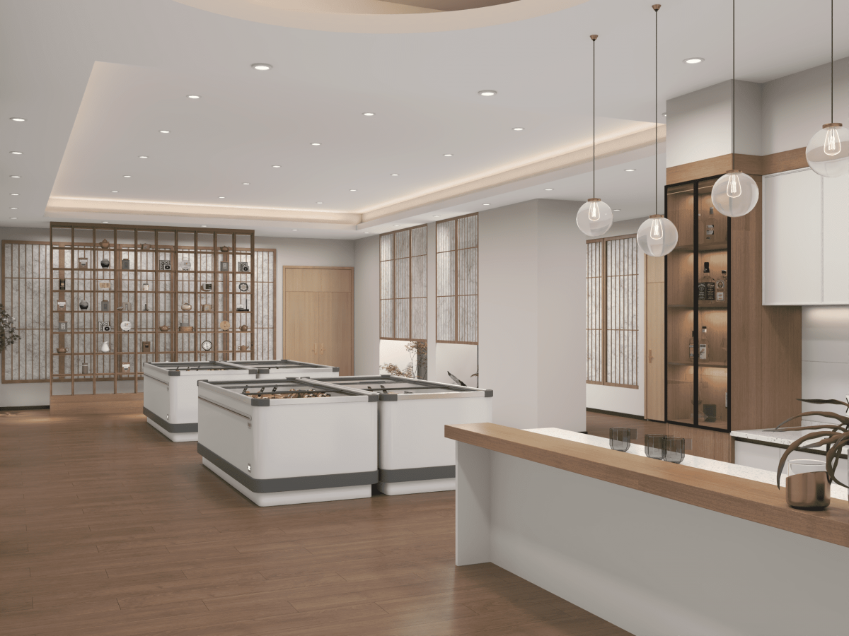 ?促進家庭情感交流?:通過開放式布局和島臺等元素,私廚打破了傳統(tǒng)廚房的封閉感,使烹飪過程成為家人互動的契機。提升空間美學(xué)與實用性?:私廚設(shè)計注重動線流暢、分區(qū)合理(如洗滌、切配、烹飪區(qū)明確劃分),并利用弧形元素、無邊界理念等手法創(chuàng)造視覺通透感。這不僅提高了烹飪效率,還通過收納優(yōu)化和材質(zhì)搭配(如木質(zhì)格柵、鏡面處理)營造出兼具秩序與藝術(shù)感的環(huán)境。?適應(yīng)多樣化生活場景?:無論是小戶型通過開放式格局節(jié)省空間,還是大空間配置獨立島臺與餐桌滿足多人聚餐,私廚設(shè)計都能靈活適配不同需求。這種靈活性讓空間既能日常使用,也能輕松轉(zhuǎn)換為社交場所,如私廚會所中通過燈光、屏風(fēng)等細節(jié)強化待客體驗。??推動健康與可持續(xù)生活?:現(xiàn)代私廚設(shè)計常強調(diào)自然材料、采光通風(fēng)及節(jié)能布局,呼應(yīng)環(huán)保理念。